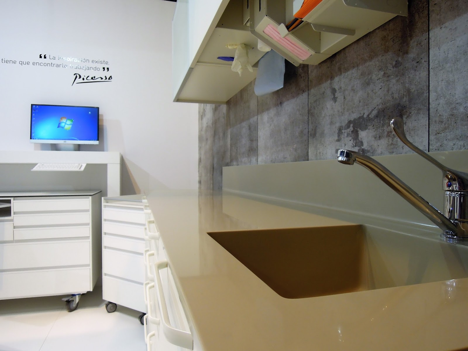 Este material permite crear superficies a medida y en una sola pieza en nuestros mobiliarios clínicos, sin zonas de unión o separaciones, de manera que podemos fabricar una superficie del mueble (incluyendo la zona del fregadero, por ejemplo) en una sola pieza. Durante su fabricación, sus compuestos permiten termoformarlas para realizar piezas curvas e incluso puede producirse mediante inyección permitiendo construir proyectos y diseños imposibles de realizar con otros materiales.